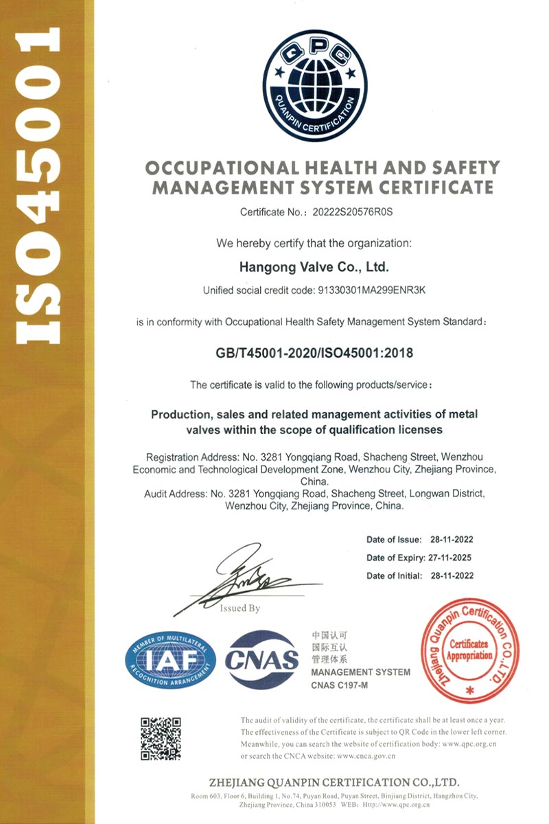 Hangong Valve Co., Ltd. is located in Bajia Industrial Zone, Wenzhou Economic and Technological Development Zone, China Valve City - the coast of the East China Sea. It is close to Wenzhou Yongqiang Airport. It has convenient sea, land and air transportation, and superior geographical environment. It is a non-regional enterprise integrating valve research, development, production, sales and service.
